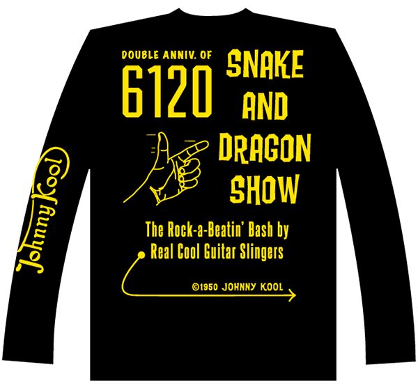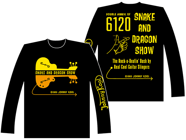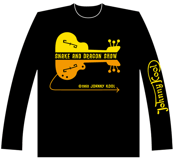グレッチ・ブラザーズのアルバム名を冠した、レトロ・ポップなデザインがクールなスネーク&ドラゴン・ショー長袖Tシャツ!REAL COOL!(袖口:リブなし) デザイン図 ブラック(前) / ブラック(後) カラー:ブラック サイズ:S、M、L、XL(サイズ&在庫) 素材:COTTON 100%(5.6oz)