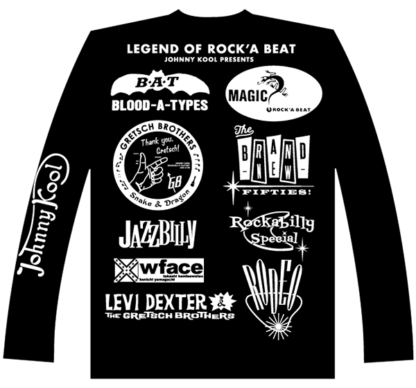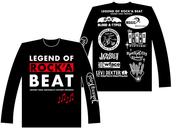 マジックと共に歩んできたロカビリー・ヒストリーは文字通りのロッカビート伝説!その歴史を背中で語るクールな長袖Tシャツ!HEY, ROCK’A BEAT!(袖口:リブなし) デザイン図 ブラック(前) / ブラック(後) カラー:ブラック サイズ:S、M、L、XL(サイズ&在庫) 素材:COTTON 100%(5.6oz)