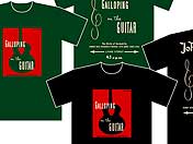 グレッチのアコースティック・ギター「6022 ランチャー」とト音記号をクラシカルなムードでデザインしたTシャツ。バック・プリント色のアイボリーがレトロな雰囲気でGOOD!