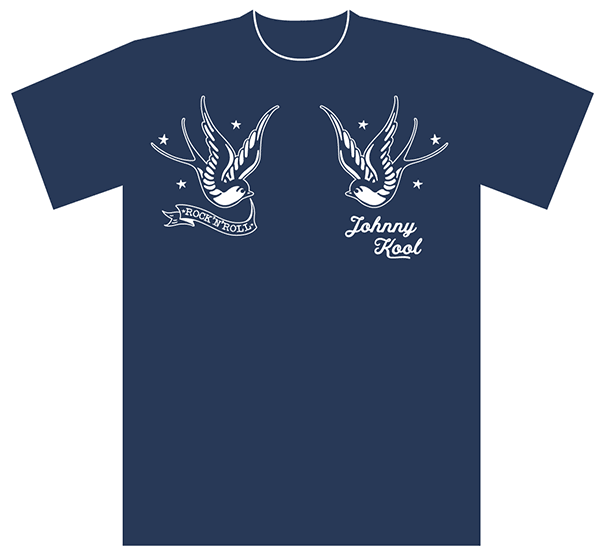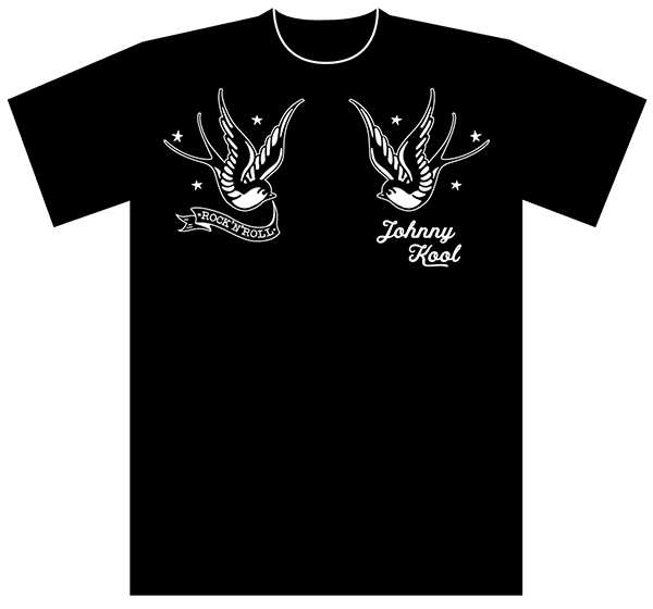 遠く戦地からの帰還を祈念したトラディショナル・タトゥーとしてメジャーなツバメ・モチーフをロックンロール・テイストにアレンジしたクールなTシャツ!IT'S ONLY ROCK'N'ROLL!
