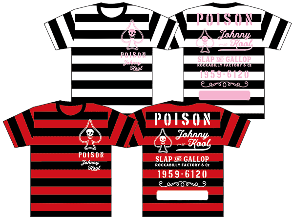 ロカビリー・ジャンキーに贈るクールなボーダーTシャツ!SLAP & GALLOP! *ブラック/ホワイトのプリント色はピンクです。