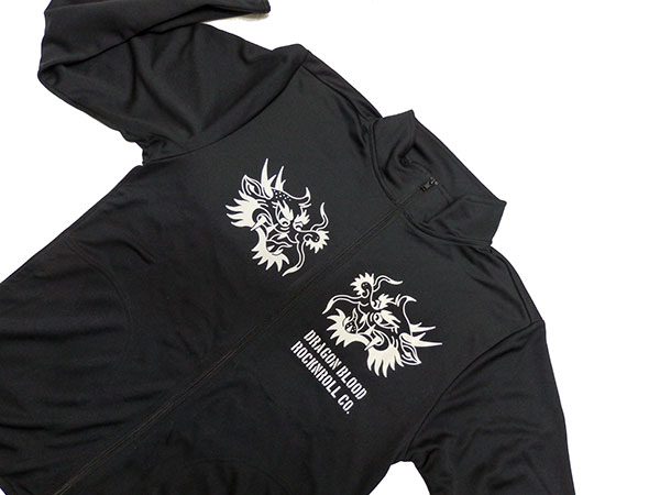 KOOLなドラゴンをモチーフにしたスタンドカラーのドライ・ジップジャケット! 製品特徴:紫外線を90%以上カットするUVケア機能付きで、オールシーズン使えるドライ素材のジップジャケット。吸水速乾性に優れ、洗濯後の乾きも早いので重宝します。