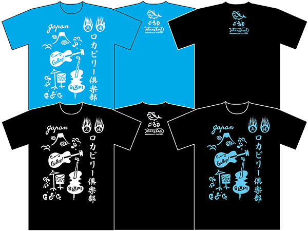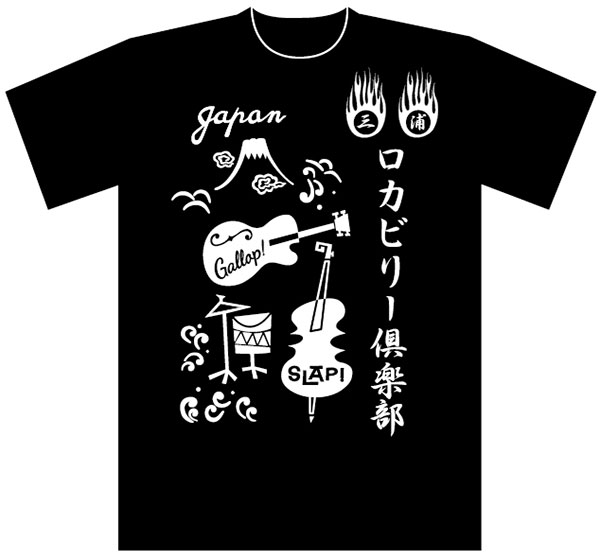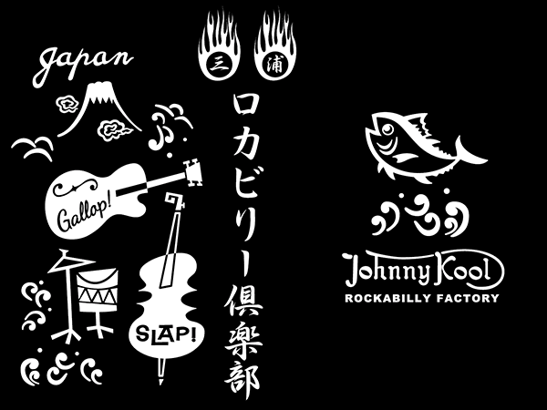JK-8181T MIURA ROCKABILLY CLUB T-SHIRT 三浦ロカビリー倶楽部 Tシャツ design Kenichi Yamaguchi 神奈川県三浦市での「三浦ロカビリーまつり」のために製作されたのオフィシャルTシャツ! 風光明媚な三浦とロカビリーを掛け合わせたデザインは、背中のマグロもチャーム・ポイント!ROCK THIS MIURA! デザイン図 / ブラック 前 / ブラック 後 / ブルー 前 / ブルー 後 / ブラックxブルー