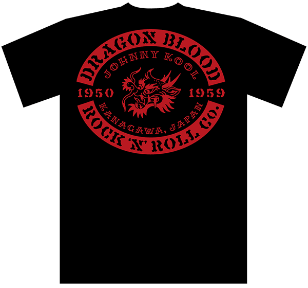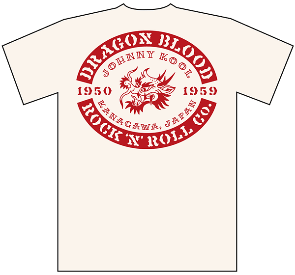 JK-8195T DRAGON BLOOD T-SHIRT ドラゴン・ブラッド Tシャツ design Kenichi Yamaguchi 世の中の1%の不良に贈るドラゴン・モチーフのクールなTシャツ!赤に見える色はエンジなので、渋カッコイイ! デザイン図 / ブラックxホワイト(前) / ブラックxホワイト(後) / ブラックxエンジ(前) / ブラックxエンジ(後) / バニラホワイト(前) / バニラホワイト(後)